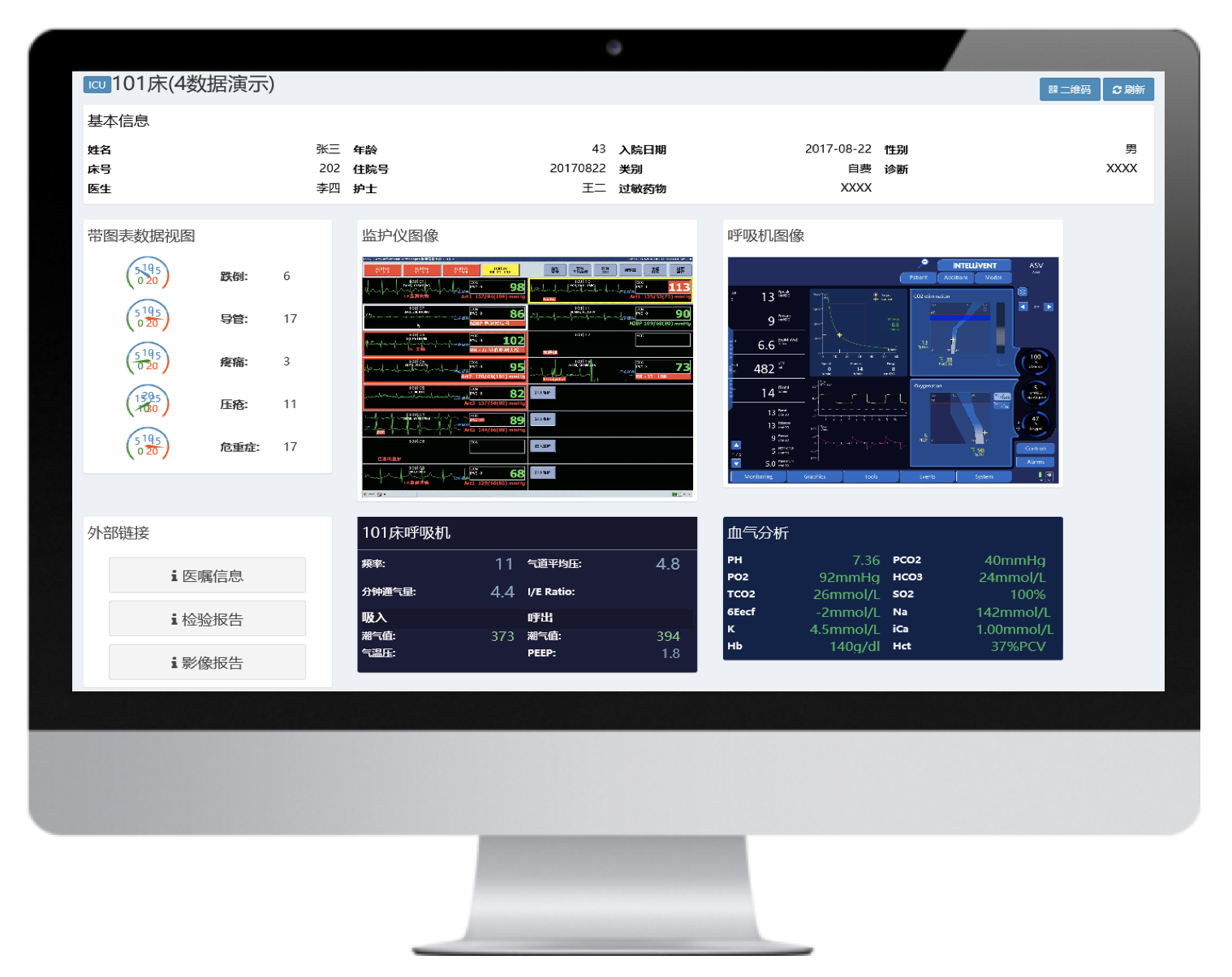 多臺不同品牌的有創呼吸機聯網,并通過大屏實時集中呈現治療預設參數和監(jiān)測參數,實現多臺集中監(jiān)測、集中管理和數據存儲。